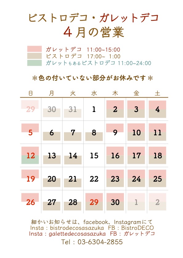 *ガレットデコの営業曜日が変わります*